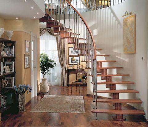 樓梯是快速移氣之通道,能讓氣在一個(gè)層面向另一個(gè)層面迅速移動(dòng),當(dāng)人在樓梯上下移動(dòng)時(shí),便會(huì)攪動(dòng)氣能,使其樓梯迅速移動(dòng),達(dá)到聚氣養(yǎng)氣之目的,為了達(dá)到目的因此樓梯的坡度越小,其效果越好。為了避免樓上之財(cái)氣運(yùn)氣直沖而下,室內(nèi)樓梯從形狀上講盡量不做直梯,做有折線型樓梯(即有休息平臺(tái)的樓梯)螺旋樓梯或弧型樓梯為最佳。當(dāng)然具體做何種樓梯還要參考各種其他因素。